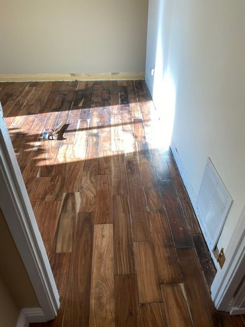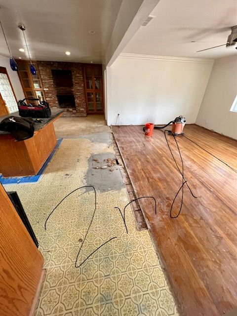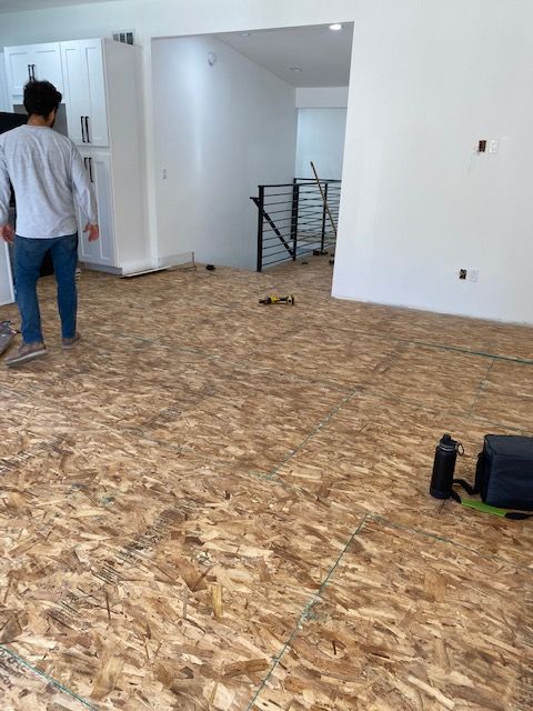 También nos encargamos de reparaciones e instalaciones de pisos de madera, laminados, tablones de vinilo y alfombras en San Diego y el norte del condado todos los días, por lo que hemos visto casi todos los tipos de pisos que existen... pero no hay dos pisos iguales, ja, ja. Cada proyecto es único, por lo que usamos paciencia y experiencia para asegurarnos de que se haga bien.